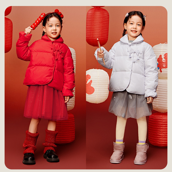 【新中式】迷你巴拉巴拉女童亲子羽绒服,冬季新款宝宝红色羽绒外套