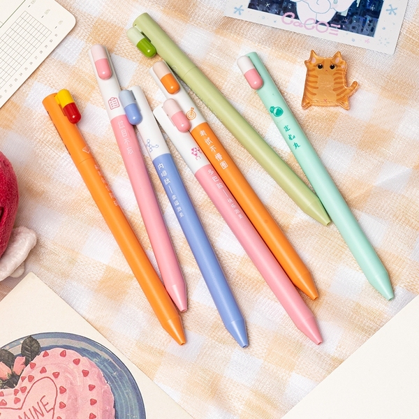 现在学生基本上都在用这种! 合慕!爱心胶囊中性笔18支 低重心的、考试专用!下拉叠金币8