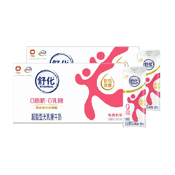 伊利舒化无乳糖脱脂牛奶220ml*24盒*2箱