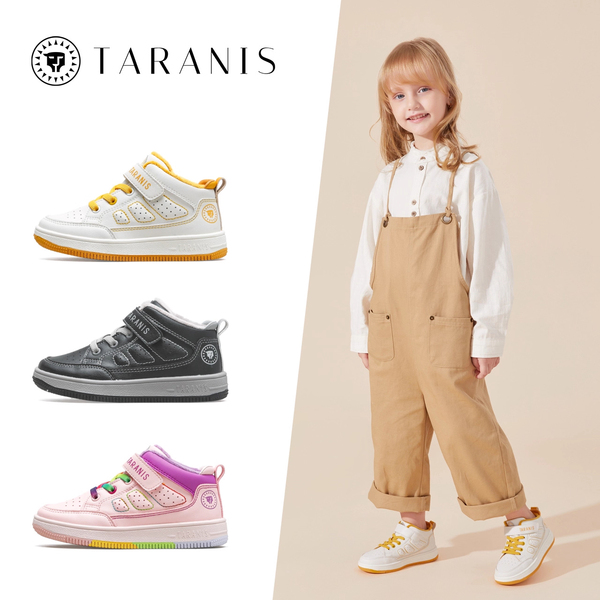泰兰尼斯反光条白鞋给孩子温暖的冬天。男女童加绒板鞋舒适又时尚。白色运动鞋,反光设计更安全,冬日户外首.选。休闲必备,时尚与温暖共存!冬日流行之选。