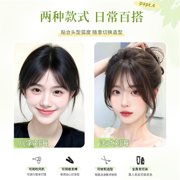 【无需发卡】假发女片头顶补发增发量真发自然前额刘海发缝魔术贴