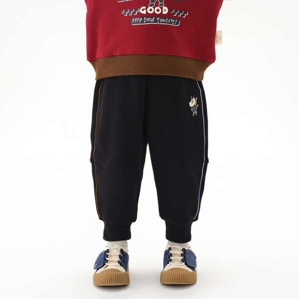 【马拉丁】撞色嵌条加绒印花针织长裤