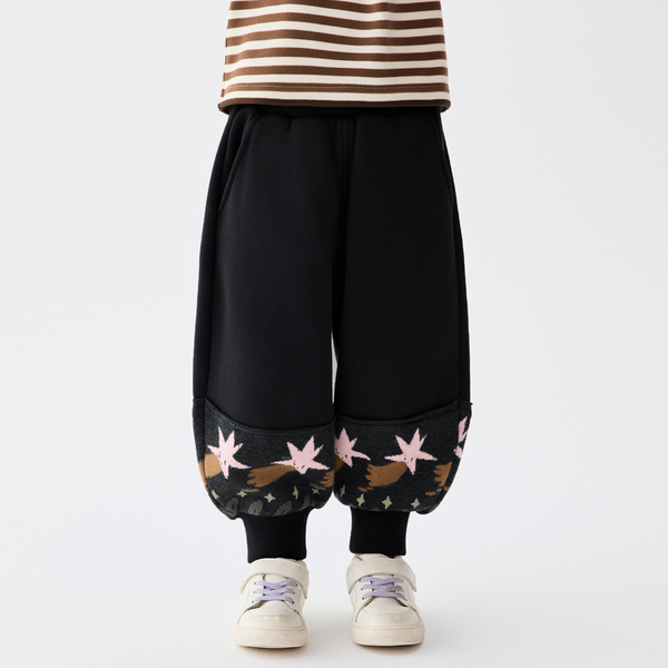 【马拉丁】撞色嵌条加绒印花针织长裤