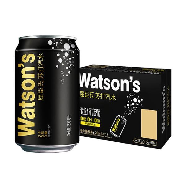 屈臣氏原味苏打水迷你罐200ml*12罐碳酸饮料气泡水0糖0脂0卡无糖