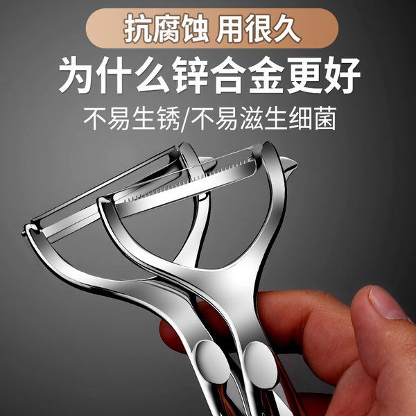 不锈钢削皮刀,去皮神奇,厨房家用必备,加厚材质,平口+锯齿双头可选。重量感好,去皮超顺手。削土豆苹果瓜类超顺手
