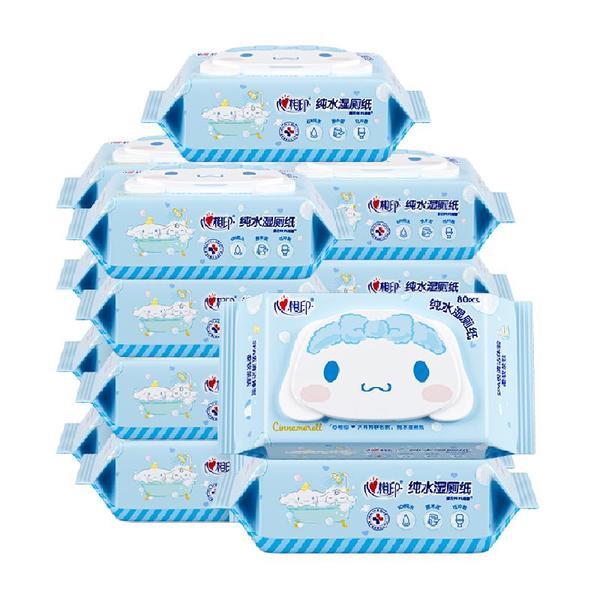 78.09!心相印三丽鸥湿厕纸家庭装80片*15包