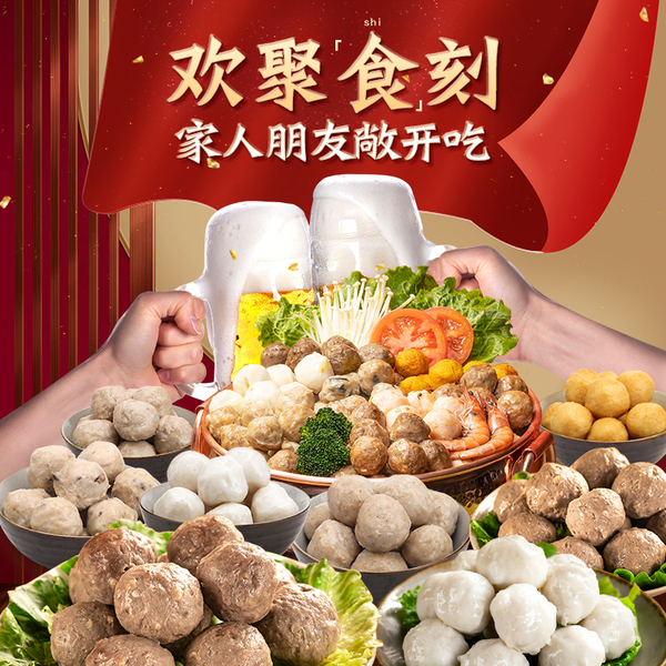 潮庭潮汕正宗牛肉丸墨鱼丸虾滑到手16件
