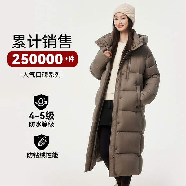 坦博尔25冬高充绒女款长款连帽羽绒服