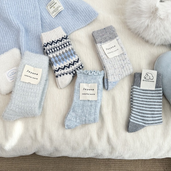 蓝莓冰朗姆羊毛袜子女中筒袜秋冬季加厚保暖甜美点子纱堆堆袜日系