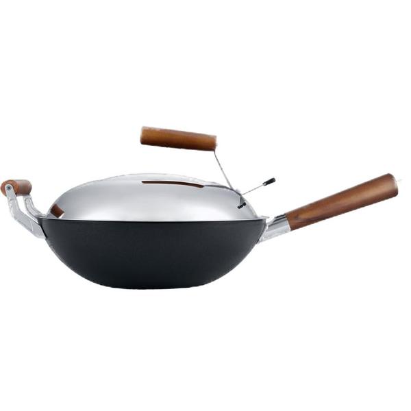 美珑美利 黑晶铁锅家用防锈炒锅 平底炒菜锅电磁炉燃气灶通用