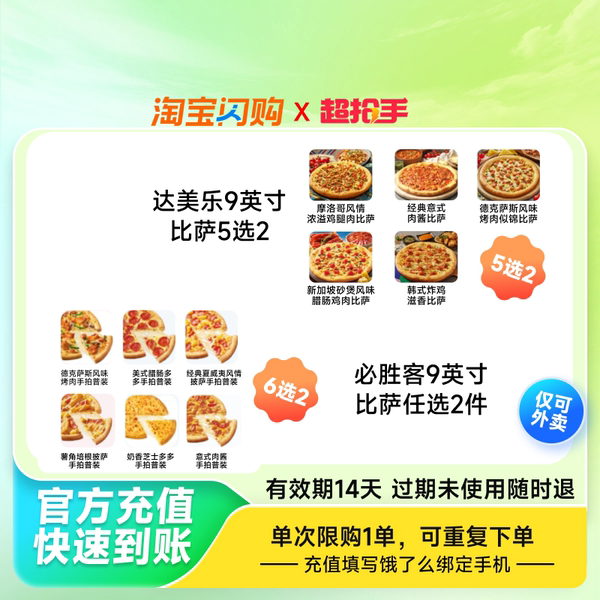 必胜客2人披萨意面8件(券)现在仅需45.13,快快囤起来