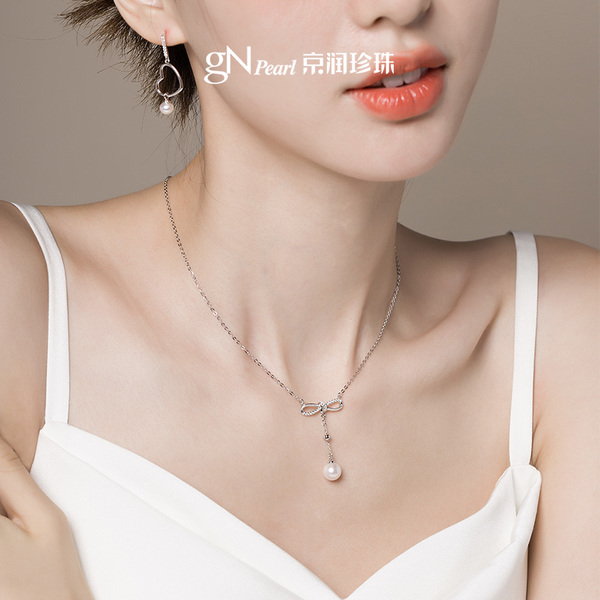 京润蝴蝶结淡水珍珠项链生日礼物