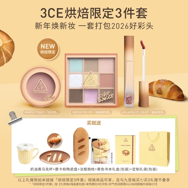 赠:牛角斜挎包,淘金币抵扣6,惊喜直降12.25,限时补贴5,领精致生活券200-15,88vip消费券200-25,凑单到手136.6元; 3CE九宫格眼影盘,质地松软顺滑,易上色不飞粉,防水持久不晕染,色泽饱满,柔和贴肤,展现原有色彩,玩转百变眼妆~【退货运费险】