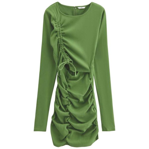 sly欧美风抽褶假两件针织连衣裙