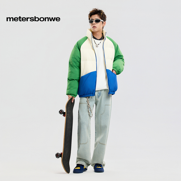 美特斯邦威面包羽绒服撞色拼接舒适保暖外套