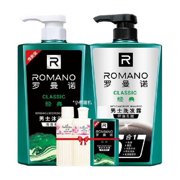 罗曼诺男士沐浴洗发组合经典古龙香控油清爽去屑家庭装