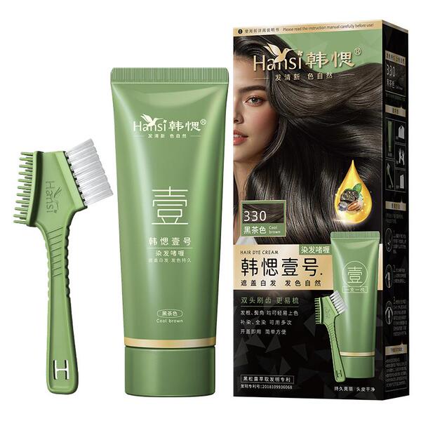 韩愢壹号染发膏染发剂植物纯黑茶色显白单剂角蛋白护染膏染发梳