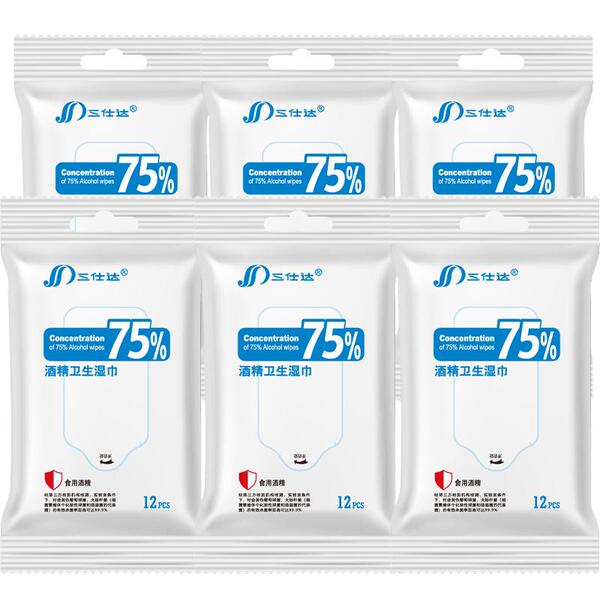 三仕达食用级75度酒精湿巾卫生湿巾杀菌小包随身12片便携装