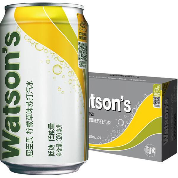 屈臣氏苏打汽水低糖柠檬草/香草/莫吉托多口味可选气泡水碳酸饮料