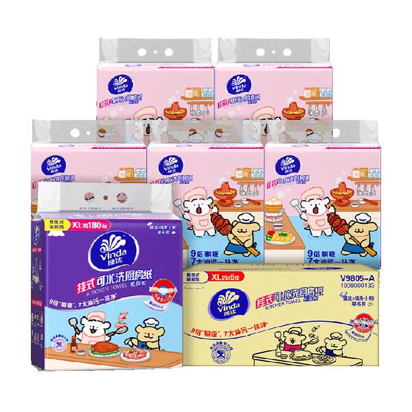 【下拉享优惠】维达X线条小狗悬挂式厨房抽纸XL码可水洗厚韧