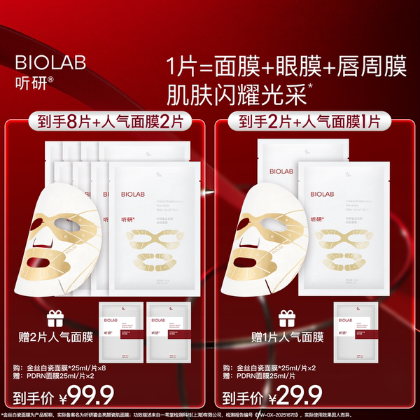 【2片金丝白瓷面膜,赠PDRN面膜1片+ 入会再送PDRN面膜1片一共4片! 1、2.99百补金刚券 2、10元官方加补 3、淘金币4.78, 4、消费券2.75 叠完以上最终到手19.38元,合计单片4.8 元(史D),有运费9元下单后直接仅退款运费即可!】3维光透精粹,纳米微乳技术 出色焕亮,肌肤闪耀光彩