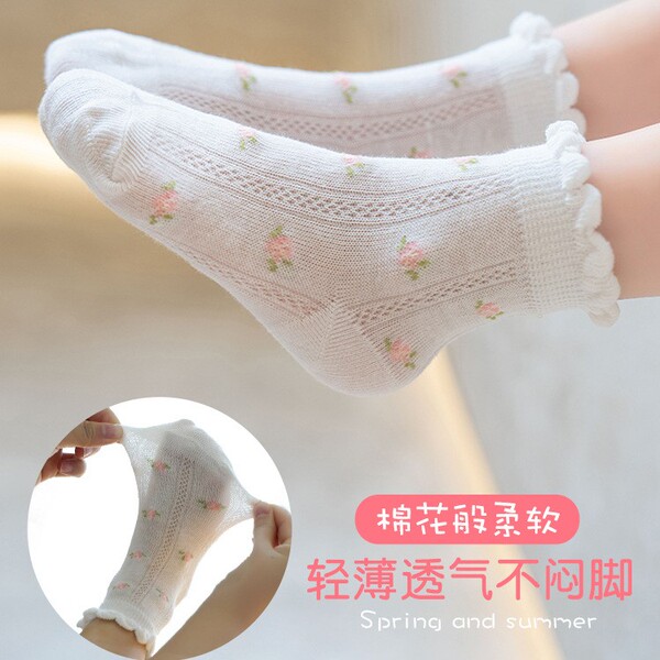 新品儿童袜子夏季薄款公主网眼袜男女孩夏天甜美粉色系透气短袜