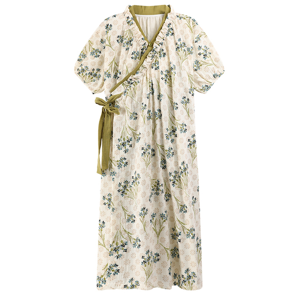 【浪莎】复古风云朵棉系带睡袍带胸垫家居服