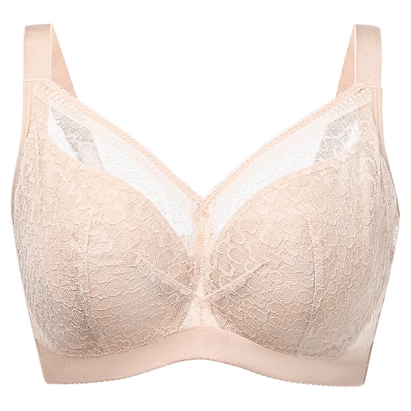 古今内衣女大胸显小软钢圈承托亲肤棉质内杯轻薄蕾丝文胸乳罩侧收