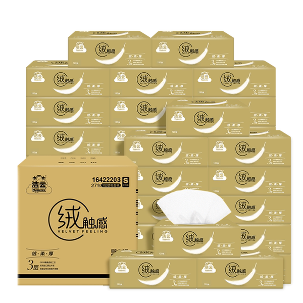 【下拉详情领优惠】洁云抽纸绒触感抽纸3层整箱s码纸巾面巾纸