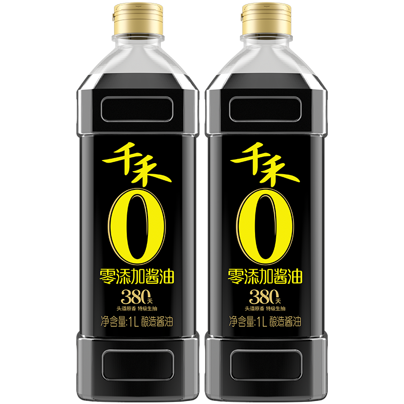 千禾0酱油头道原香380天1L*2特级生抽零添加家用调味料官方直营