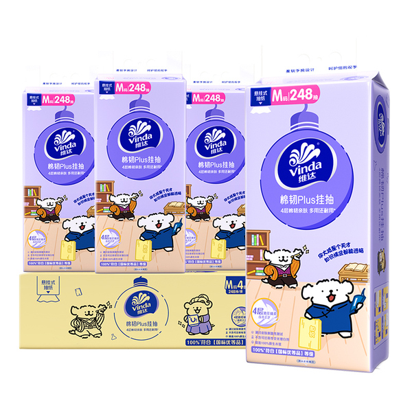 维达棉韧Plus悬挂抽纸M码4提整箱