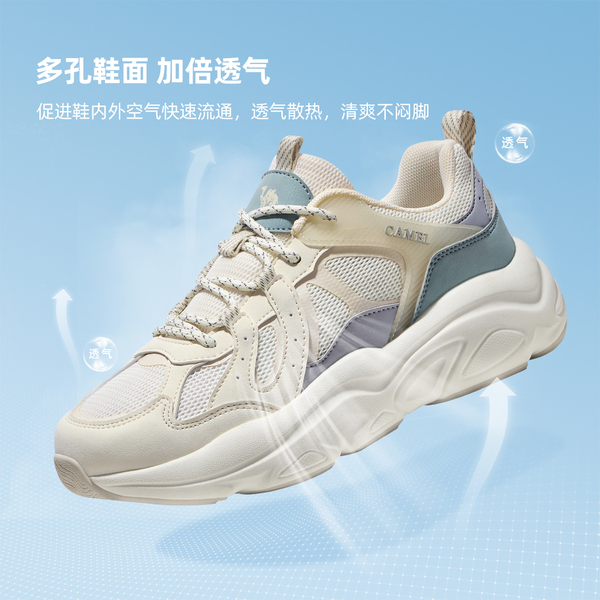 骆驼官旗休闲老爹鞋,防撞减震抓地耐磨,透气设计春夏穿搭不闷脚,米色百搭显白,舒适度满分,现购更划算!