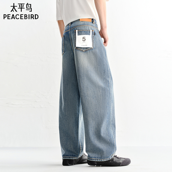 太平鸟男装牛仔裤26夏季新款浅色跳色水洗直筒时尚纯棉长裤潮