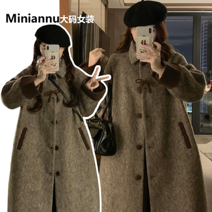 爵莱菲大码胖mm冬围巾款双面手缝羊毛大衣女韩版宽松羊毛呢子外套