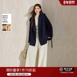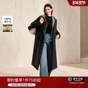 蓝语灰色休闲连帽开衫双面呢大衣