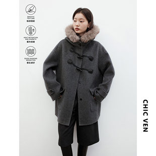 连帽毛领羊毛双面呢牛角扣大衣