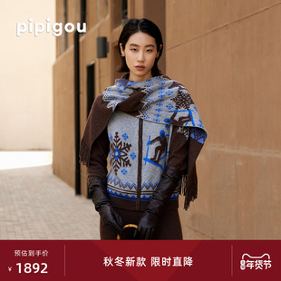 【明星同款】BLUE ERDOS冬新格雷系山羊绒混纺半开圆领羊绒衫女