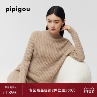 皮皮狗半高领立体钩花羊绒套衫女