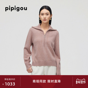 帕罗极简风立领拉链针织开衫女
