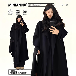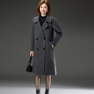 双面羊绒女秋冬新长款大衣高端炭灰妈妈装宽松厚实大码羊毛呢外套