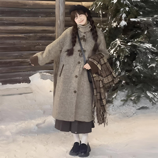 阿车家的大码jk原创日系学院风正肩牛角扣大衣加厚中长款毛呢外套