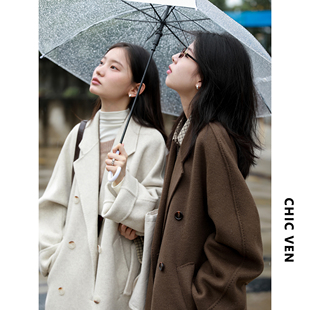 廓形双面羊毛大衣长款毛呢外套