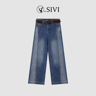 熙薇【星尘漫舞】2025冬季新款时尚百搭重工加绒牛仔裤H6415