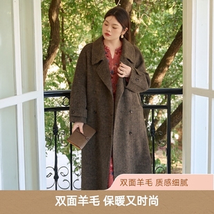 膘儿妃大码秋冬显瘦双面羊毛大衣