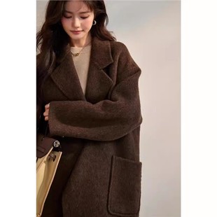 羊毛羊绒大衣女长款秋冬新款高端时尚厚实双面呢大码妈妈毛呢外套