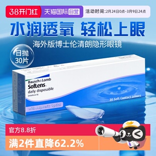 【自营】海外版】博士伦近视隐形眼镜日抛30片清朗透明白片水凝胶