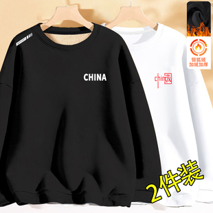 【发货快】秋冬季男士卫衣宽松加绒套头圆领打底衫长袖T恤大码百�